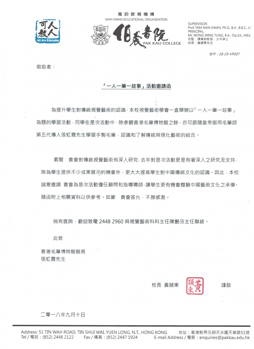 香港毛筆博物館館長張虹霓先生2018<一人一筆一故事>
