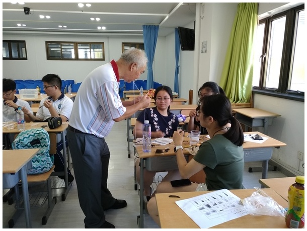 我們高舉着一下午認真做的成品,用鏡頭記錄了這一瞬間。可能我們做的這雞毛筆不怎么美觀,不怎么成功,但這次的活動帶給了我們很多,不管是學到了一項技能,還是一種精神——張虹霓先生一生的匠人精神,又或者是“一人一筆一故事”……活動。為我們授課的是從香港遠道而來的張虹霓先生——香港毛筆博物館的館長。
