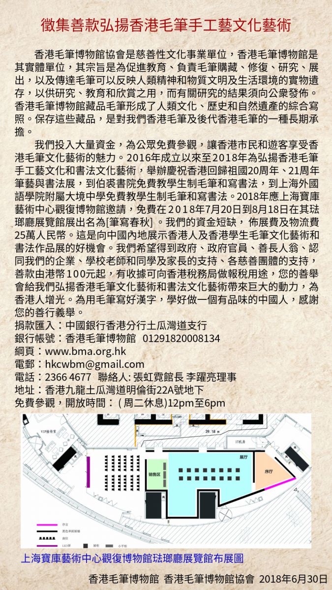 籌款項目:2018年6月12-14日慶祝香港回歸21周年普天同慶 [一人一筆一人物一藝術] 毛筆文化藝術和書法作品展