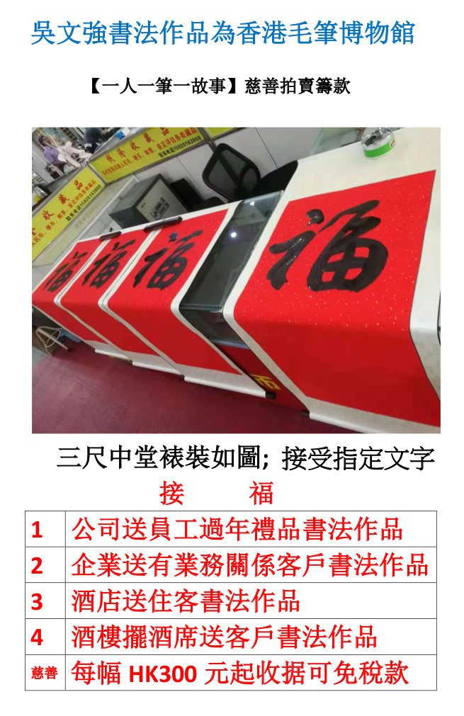 2. 捐贈[一人一筆一故事] 書法、畫,捐贈者作品慈善拍賣,有收據不可報稅用途; 感謝您的捐款及收藏捐贈[一人一筆一故事] 書法、畫捐贈者作品。