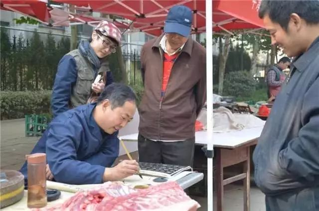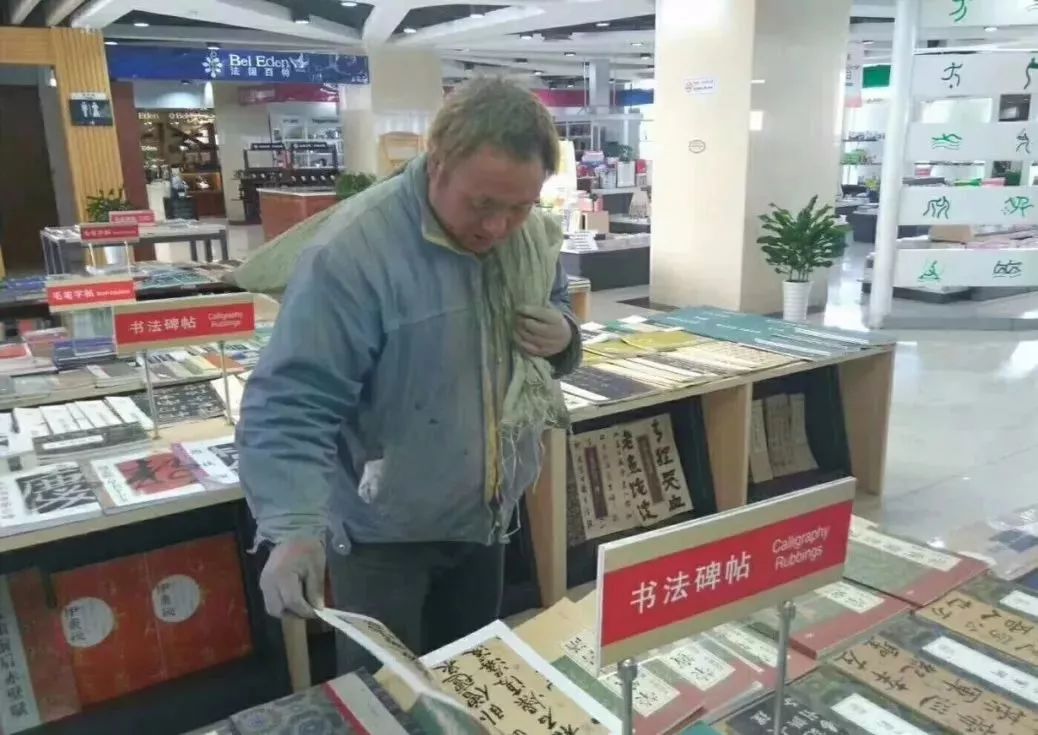 沒有顧客光顧時也不忘練上几筆,所寫應該是《書譜》。他專注的神情好像并非在鬧市,肉攤是為了活着,可能練字於他而言才是生活。