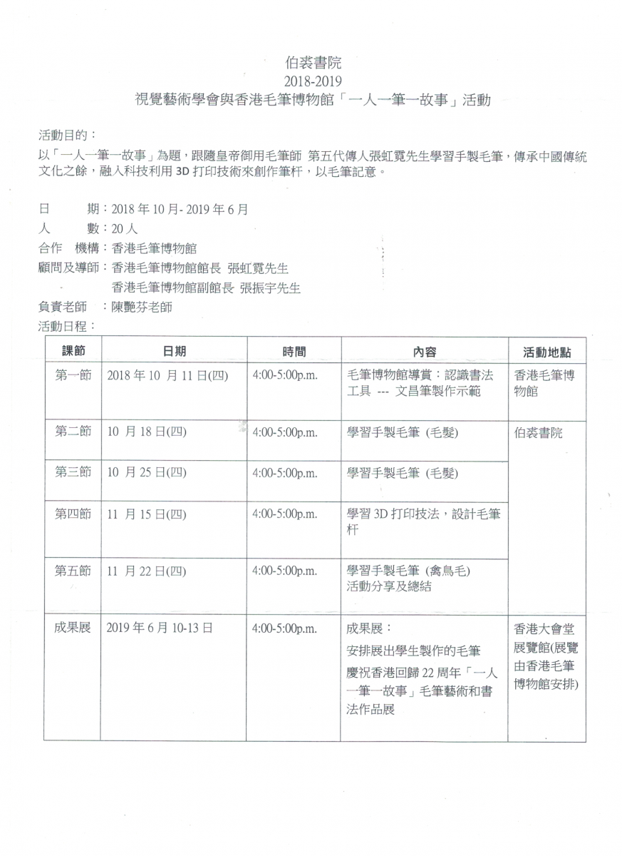 伯裘書院視覺藝術學會--毛筆製作與書法班